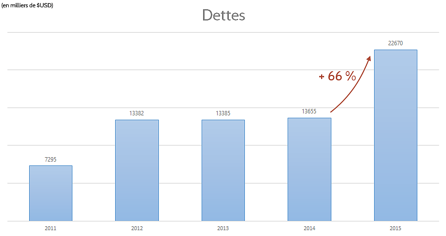 Seul point qui nuance un peu l’optimisme quant à la situation de l’entreprise : la forte augmentation (+ 66%) de la dette (22,67 milliards USD) entre 2014 et 2015 du fait (notamment) de l’acquisition d’Altera. De ce point de vue, Intel rompt avec 3 années (2012,2013,2014) de stabilisation de la dette.