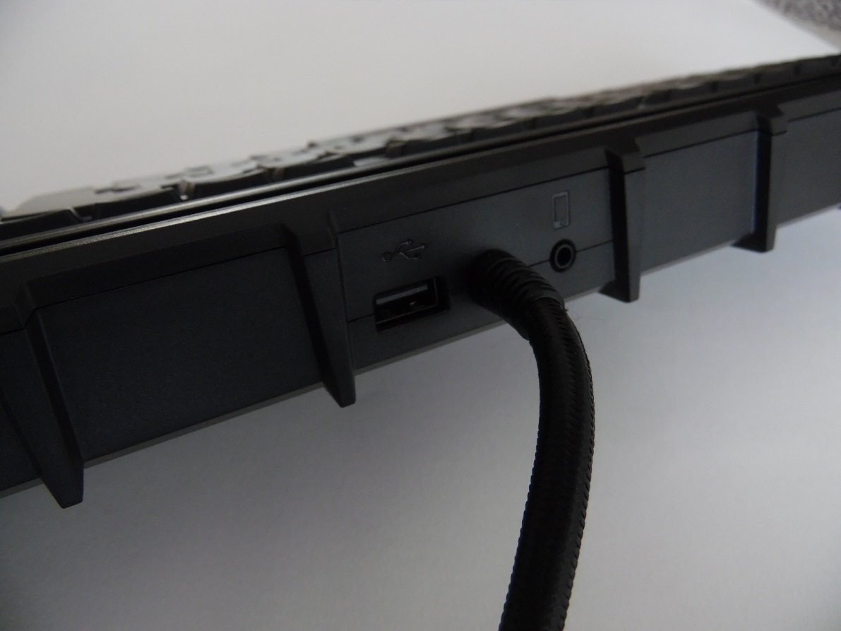 Maintenant au niveau des branchements et des câbles, il en possède en tout 6, dont le principal qui est fixé directement au clavier. Au bout de celui-ci, on retrouve deux branchements USB et une prise micro et une prise audio pour la station d’accueil universelle.