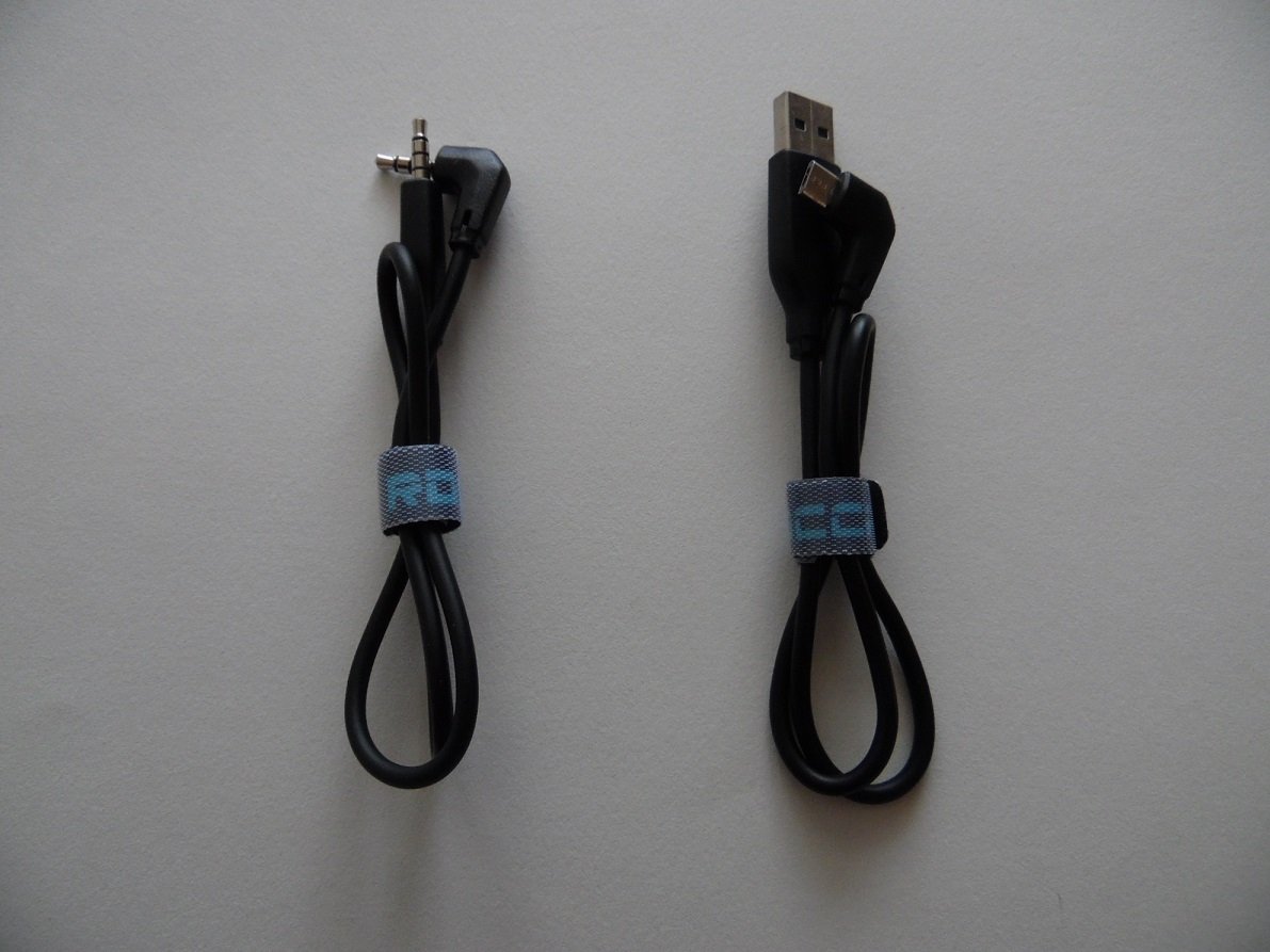 Les deux autres câbles sont aussi destinés à la station d’accueil, le premier est destiné au chargement du smartphone ou de la tablette, et le deuxième câble est en double jack, lui aussi prévu pour être branché aux appareils.