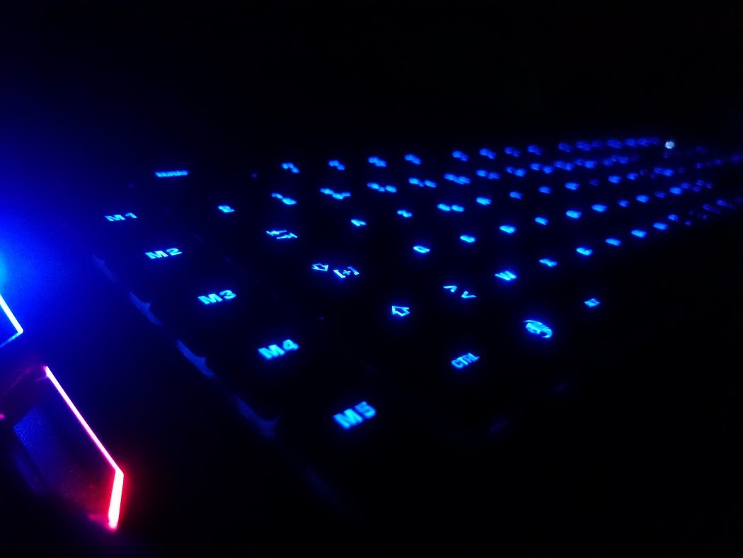 Au niveau des touches, en plus de celles habituelles, nous avons 12 touches supplémentaires implantées sur ce clavier. Sur le côté gauche de celui-ci, on retrouve cinq touches allant de M1 à M5 toutes programmables via l’application.