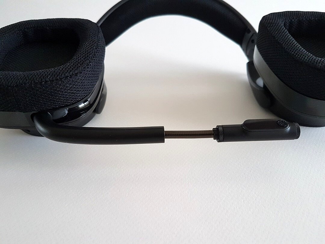 Les oreillettes du G533 ont les bords arrondis mais ne sont pas rondes, elles sont rectangulaires. Pour le microphone, il est dépliable d’avant en arrière, et son extrémité est elle aussi dépliable et flexible par la suite pour un meilleur positionnement.