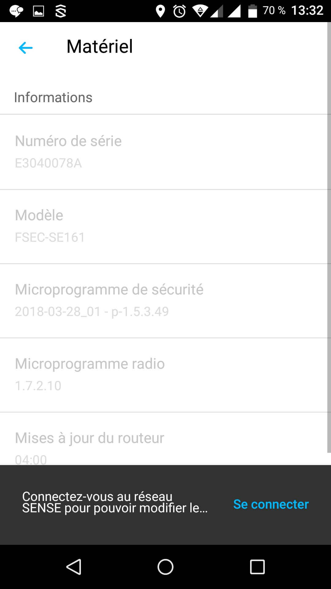 Idem au niveau de l’application où j’ai eu le droit au fait qu’elle ne voyait pas le routeur, pourtant dans la même pièce.