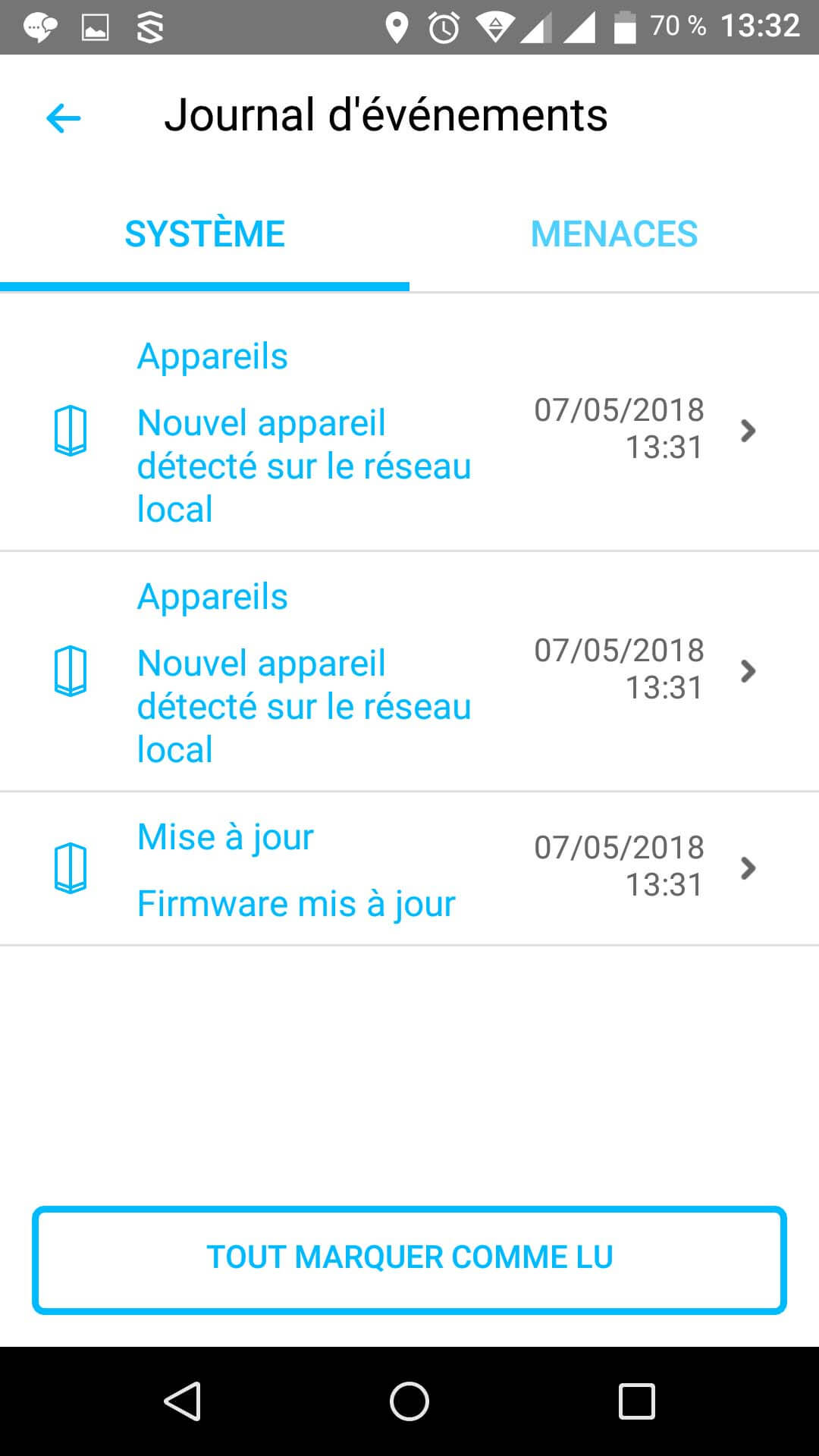 Premier onglet, on retrouve un État général du routeur avec notamment le nombre d’appareils protégés et les menaces bloquées.