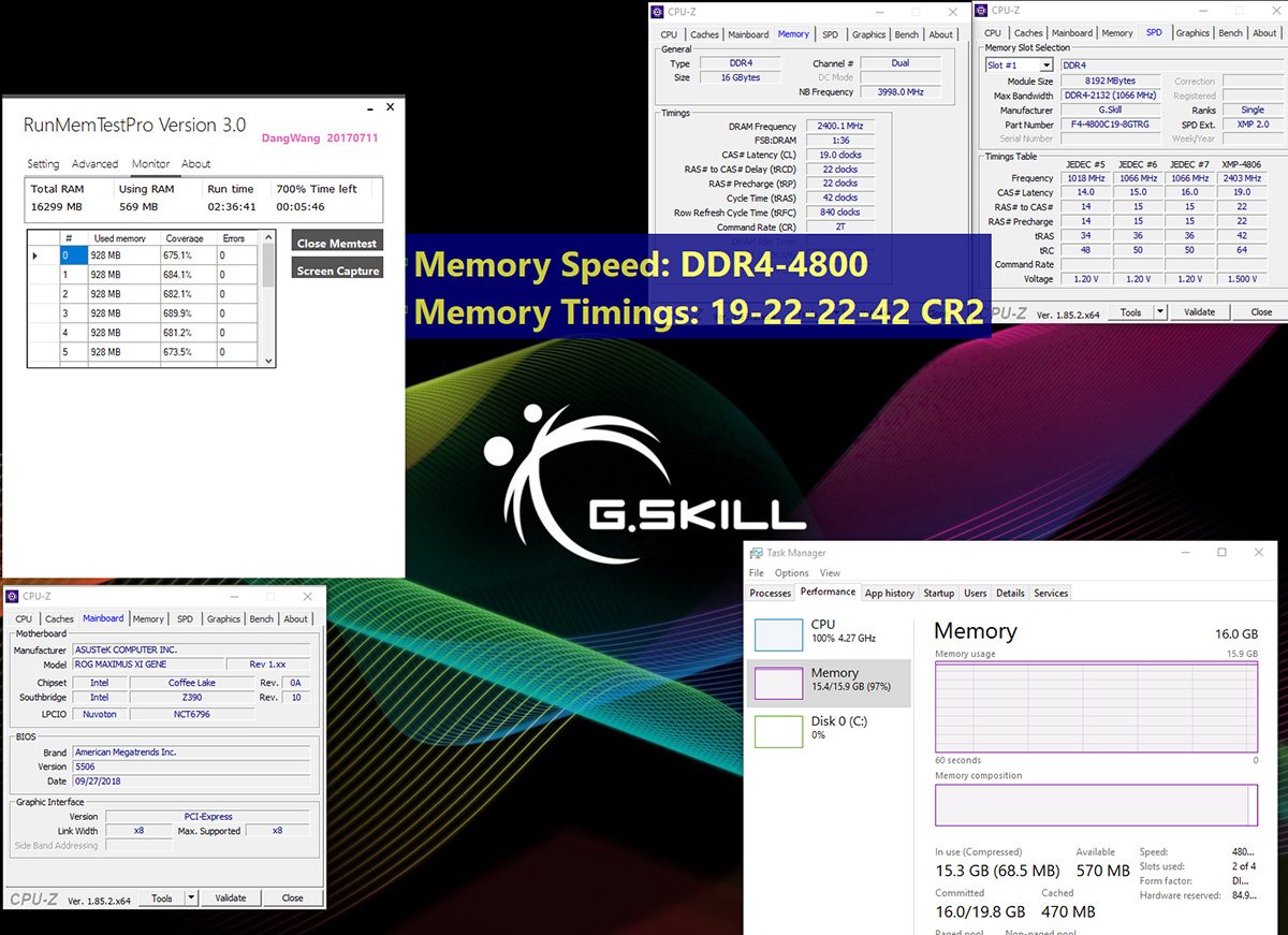 - DDR4-4800MHz CL19-22-22-42 16GB (2x8GB)