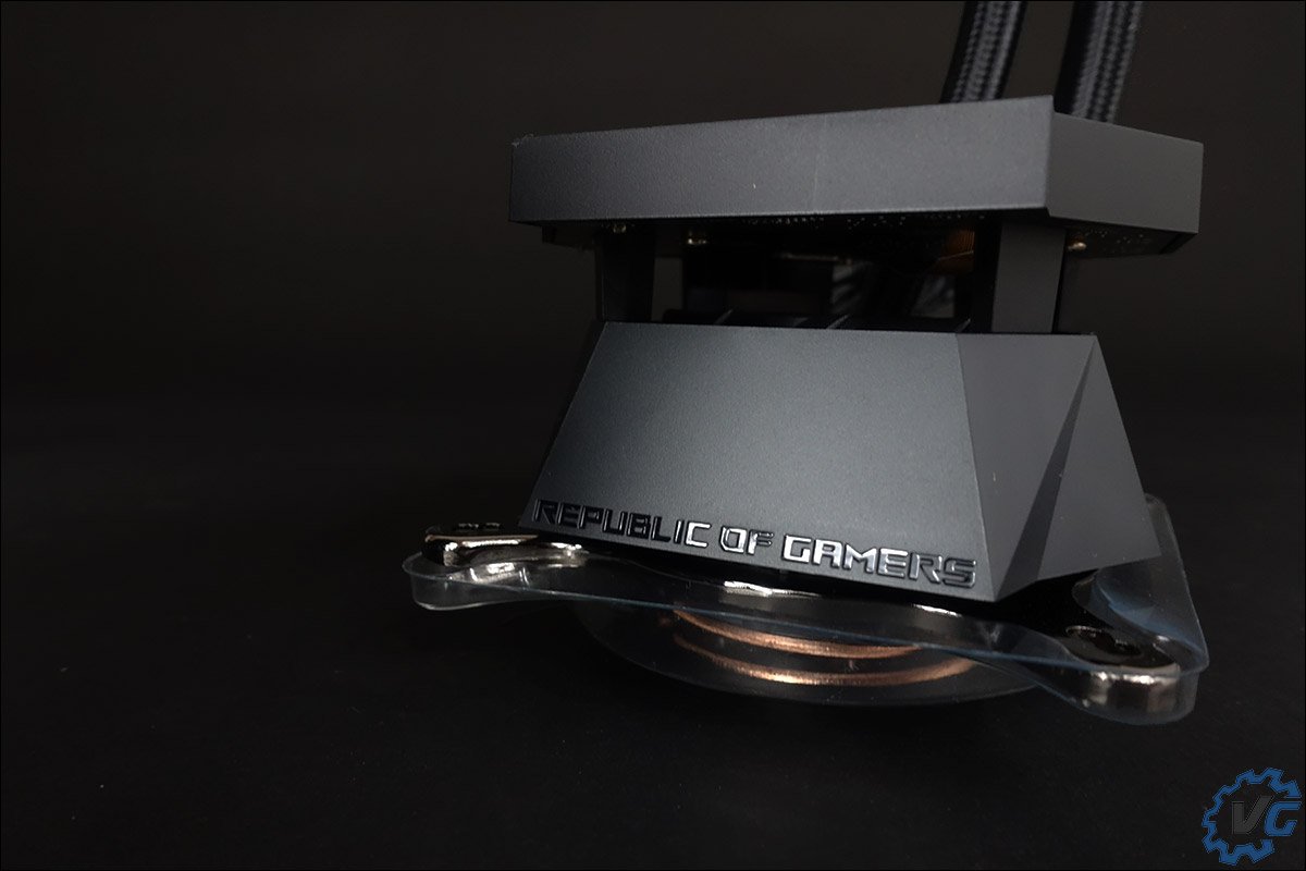 Comme le RYUO, notre sample est assemblé autour d’une structure de la marque Asetek de dernières générations. Asus tient pourtant à se démarquer de la concurrence en l’adaptant à ses ambitions. Le RYUJIN est disponible en deux versions, l’une avec un radiateur de 240 mm et l’autre de 360 mm. Inutile de dire que la version 360 sera plus performante en terme de refroidissement.