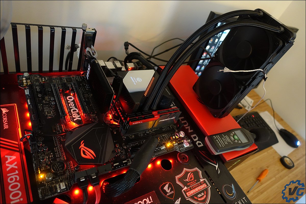 Les tests vont me permettre de mesurer les performances de ce kit Asus ROG RYUJIN 240 face aux autres kits passés dans le labo. Gardez à l’esprit qu’il s’agit d’un kit en 240 alors que la majorité kits était des versions en 280 mm. La forme inhabituel du waterblock est visuellement très réussie lorsqu’il est en place sur la carte mère.