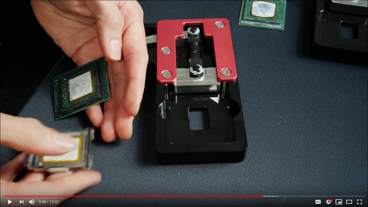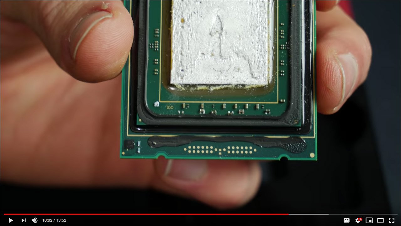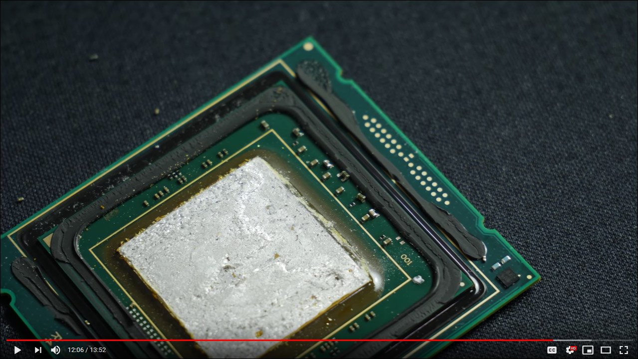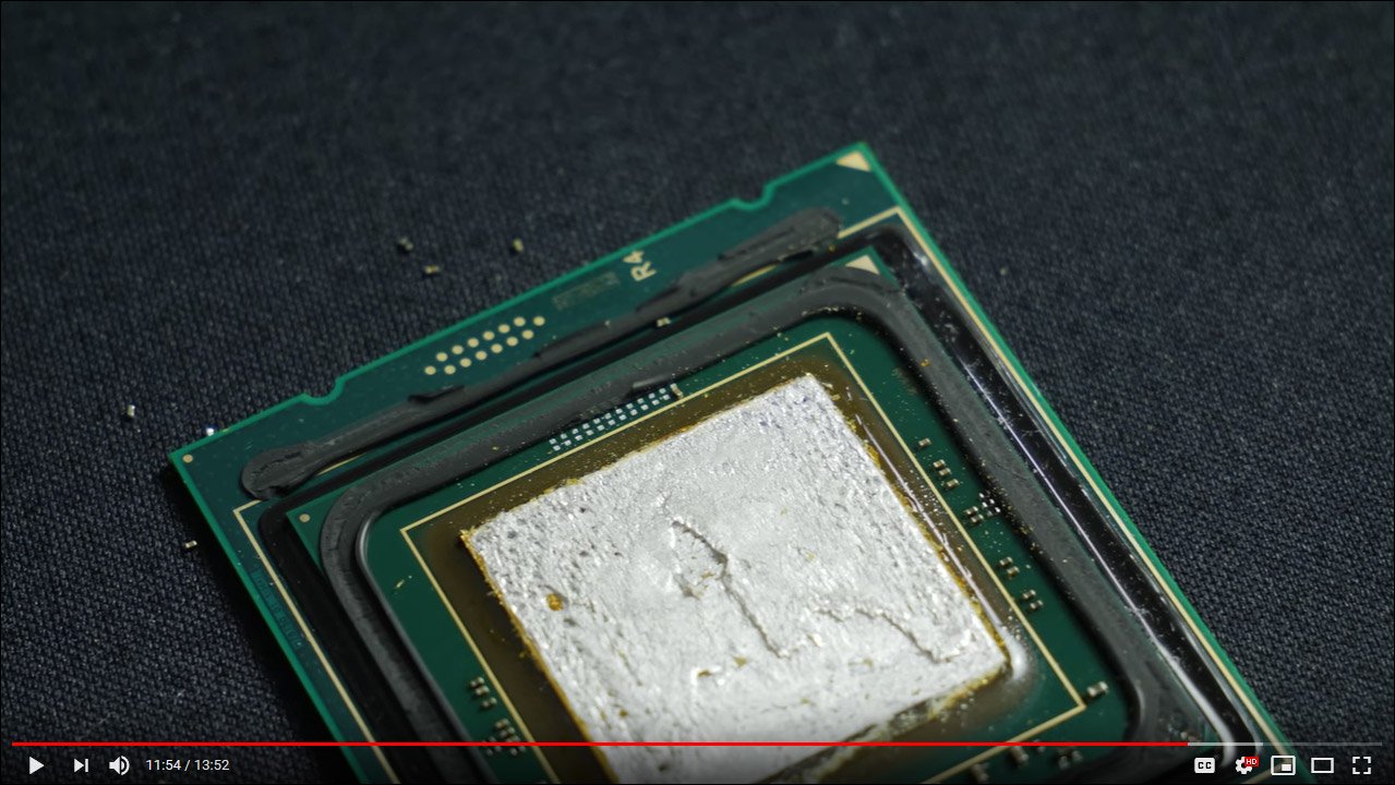 Der8auer a difficilement réussi à « décapsuler » l’un de ses 9980XE mais à quel prix ! Cela a provoqué l’arrachement de nombreuse résistances et donc la mort prématurée du processeur. Le fait de chauffer le CPU afin de faciliter le delid ne fonctionne pas non plus puisque la soudure se répand alors sur les résistances. La conclusion actuelle de der8auer étant : « Don’t do it ! ». Je poste ci-dessous la vidéo complète de son récit.