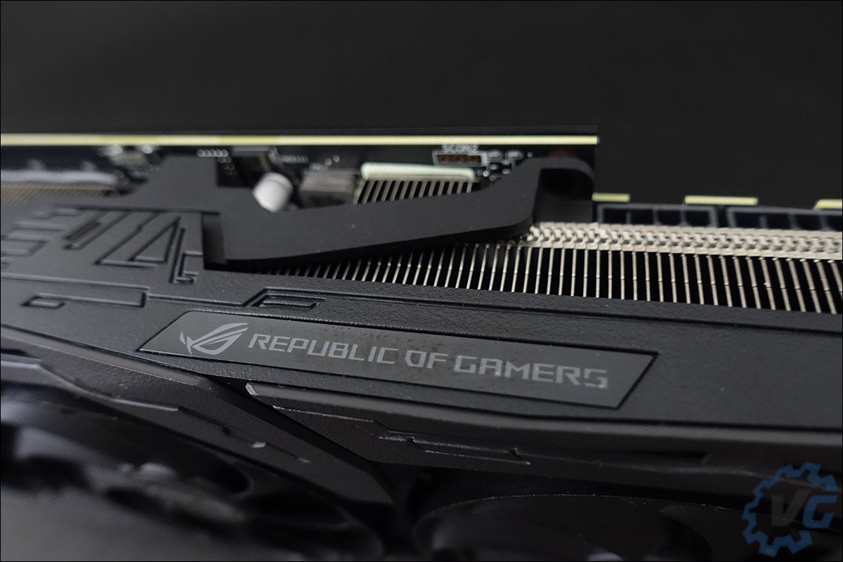 L’imposant radiateur est traversé par pas moins de six heatpipes en cuivre nickelé afin d’évacuer la chaleur du GPU. Les différents composants du PCB maison sont eux aussi bien au frais et l’étage d’alimentation est composé de 16 + 3 phases. Par rapport à la GTX 1080Ti Strix, le radiateur a pris de l’embonpoint afin d’améliorer la dissipation de la chaleur.