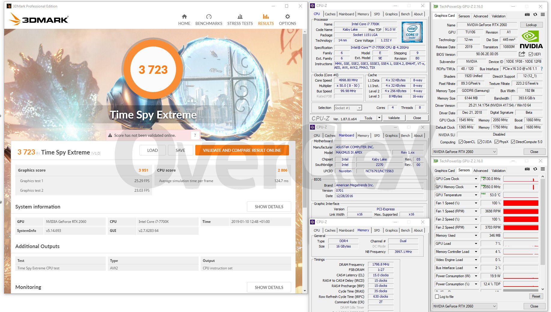 - Carte graphique : NVIDIA RTX 2060 Founders Edition (drivers NVIDIA 417.54)