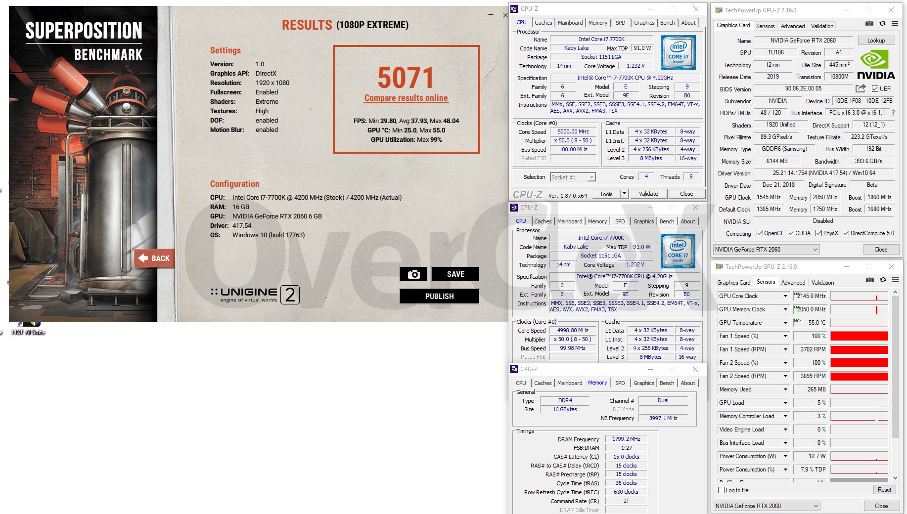 - Processeur : Intel i7 7700K à 5 GHz (50×100 MHz) 1,21 V