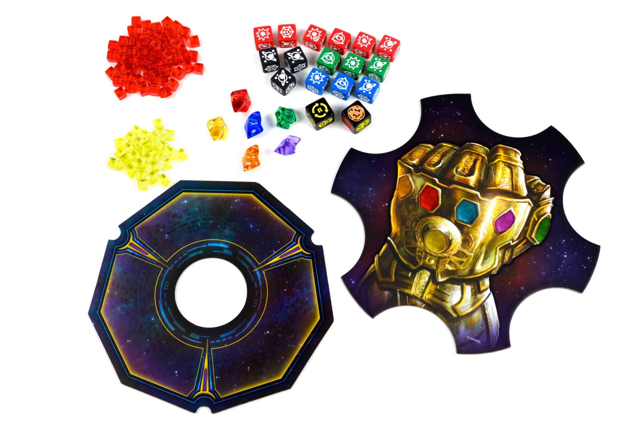 Il lance alors le dés de gemmes, et pose un cube de la couleur du résultat sur la gemme correspondante. Si à la fin du tour, il y en a cinq sur la même gemme, Thanos la récupère et l’insère sur son gant, ce qui lui octroiera un pouvoir supplémentaire, typiquement celui d’infliger ou de soigner des dommages. Il faut donc espérer que le nombre de cubes progressera de façon à peu près égale, chaque gemme obtenue par Thanos rendant naturellement la partie plus difficile.