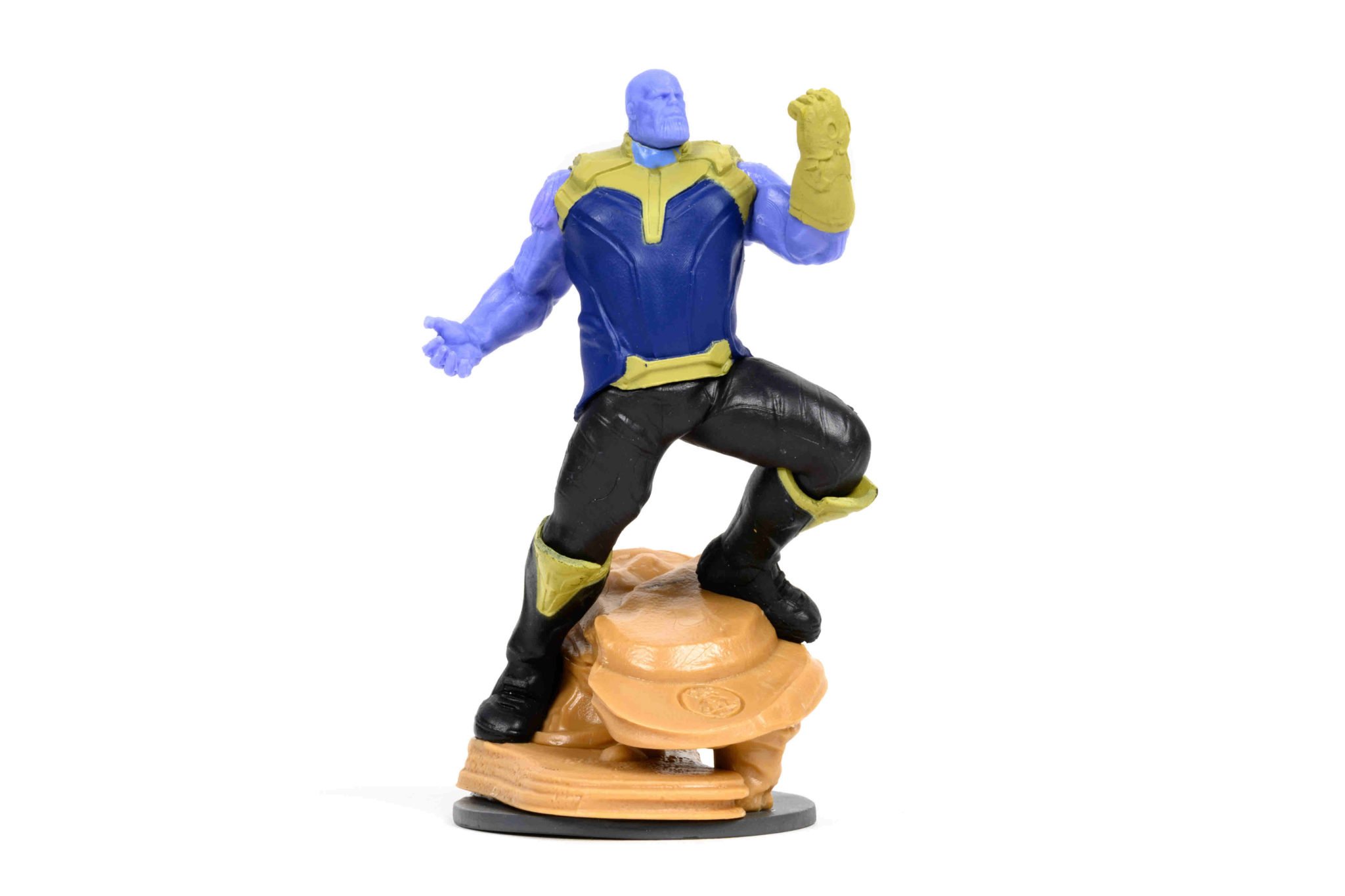 Ce qui frappe dès son ouverture, c’est la grande statuette de Thanos, sur laquelle on ne manquera pas d’être partagé, entre des finitions très imparfaites et l’agréable surprise qu’un jeu de société n’ayant absolument aucun besoin d’une telle figurine ait la générosité de l’intégrer pour le seul plaisir de l’immersion. Les héros n’étant représentés que par des cartes, leur face-à-face avec un Titan qui ne démérite pas cette appellation est assez impressionnant.