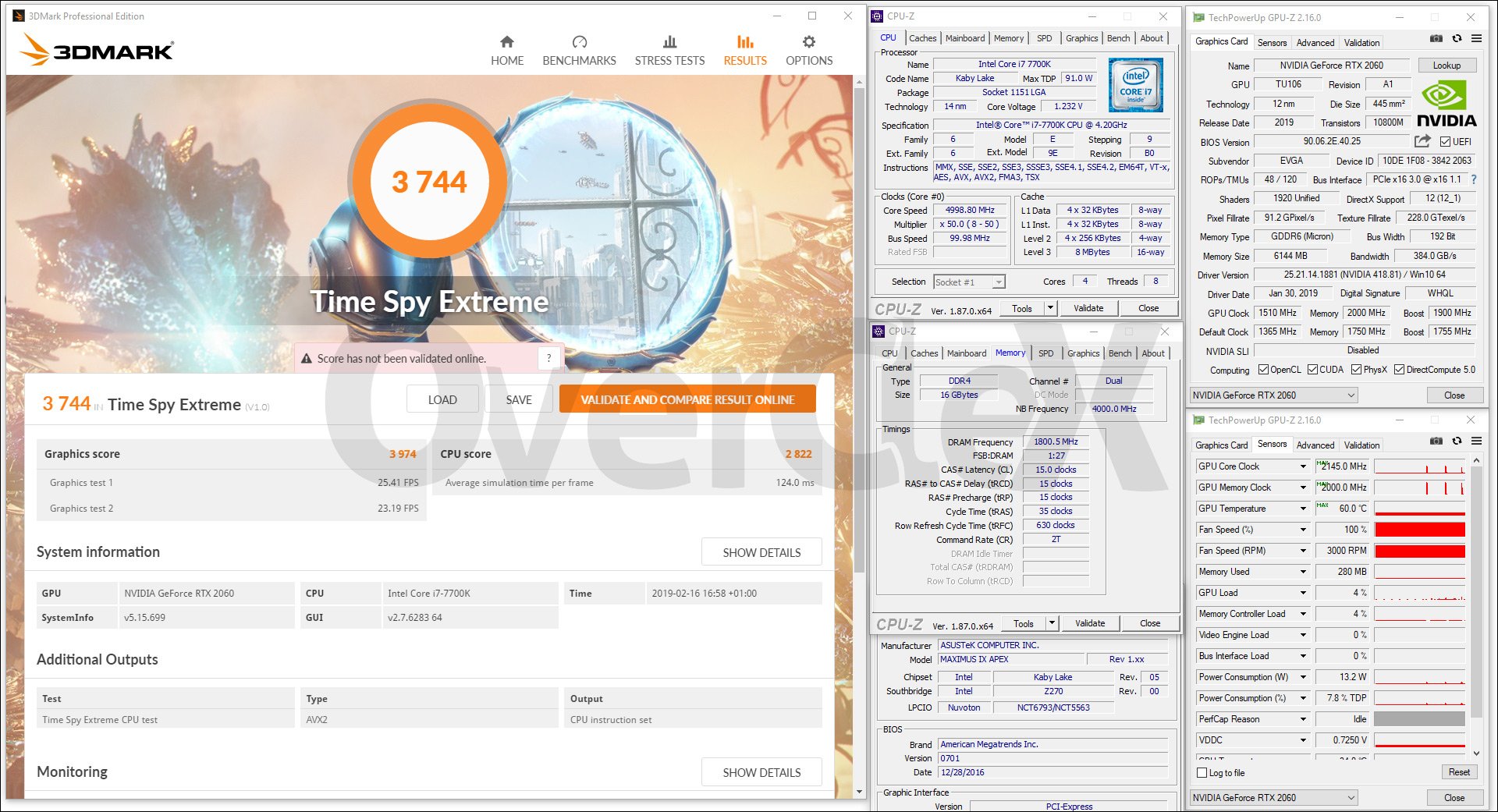 Grâce au froid, j’ai pu bencher entre 2280 et 2295 MHz pour la fréquence Boost. Le GPU sous LN2 m’aurait très certainement permis de gratter encore des mégahertz. Voici trois résultats permettant de juger de la fréquence Boost.