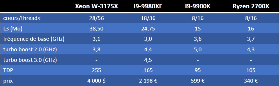 - Processeur : Intel Xeon W-3175X 28 cœurs