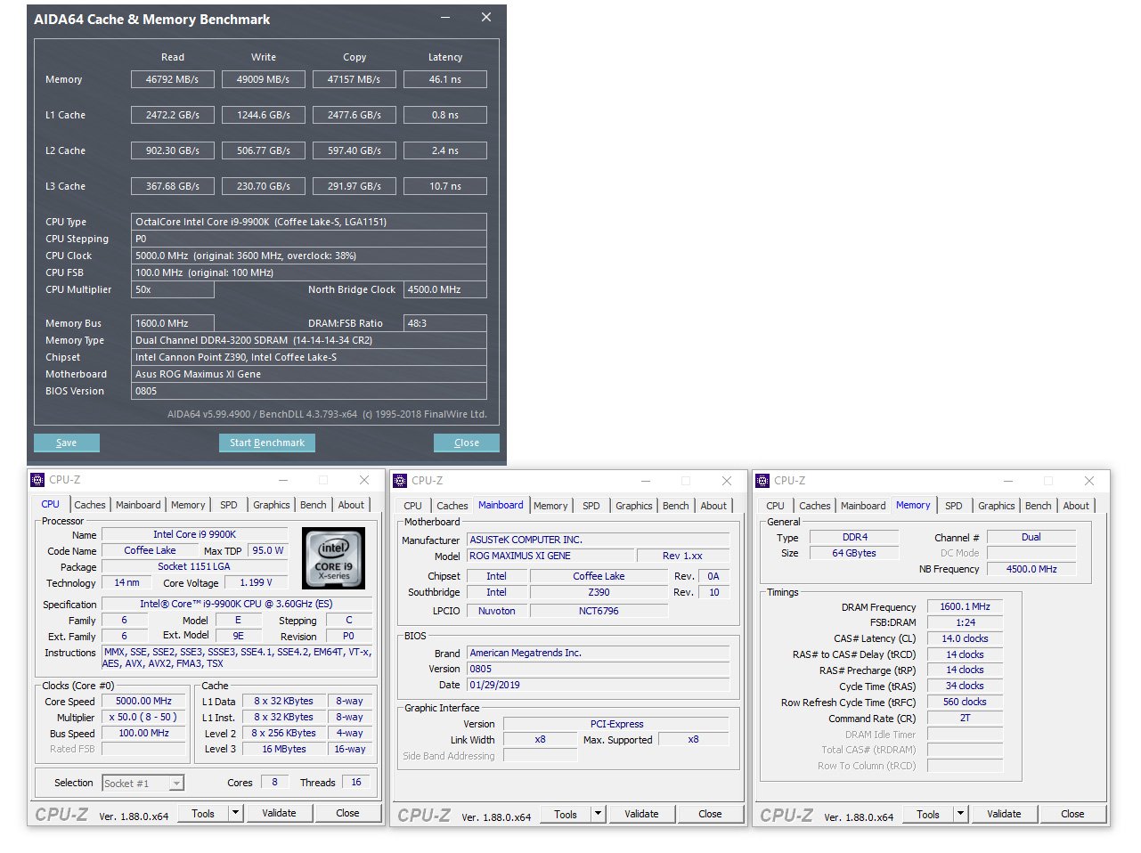- Processeur : Intel i9 9900K à 5 GHz (50×100 MHz) 1,21 V