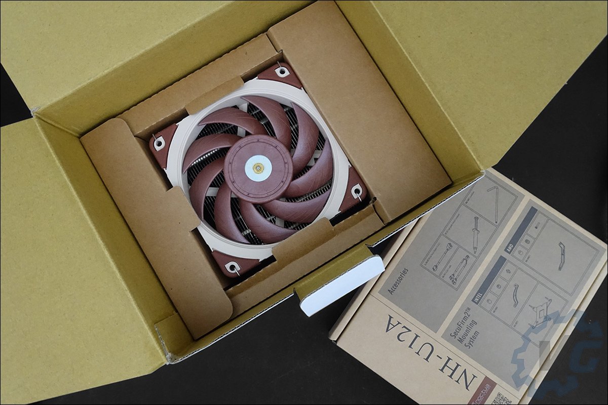 Noctua s’est forgé une excellente réputation sur la qualité de finition mais aussi sur le packaging de ces produits. Et avec le NH-U12A, c’est encore un sans faute. On retrouve au niveau du bundle : deux adaptateurs « faible bruit (L.N.A.) », un câble en Y, de la pâte thermique NT-H1, le système de fixation SecuFirm2 ainsi qu’un badge en métal reprenant le logo de la marque.