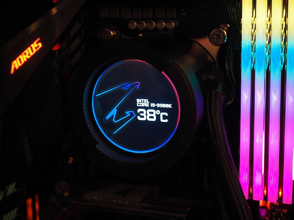 Le combo pompe et waterblock dispose d’un top bénéficiant d’un écran LCD qui affichera le logo AORUS ainsi que différentes informations (fréquence du processeur, température, …). Le rétroéclairage des ventilateurs et du waterblock devrait se faire via le logiciel AORUS RGB Fusion 2.0 de Gigabyte. L’arrivée de ces kits est prévue pour le troisième trimestre 2019.
