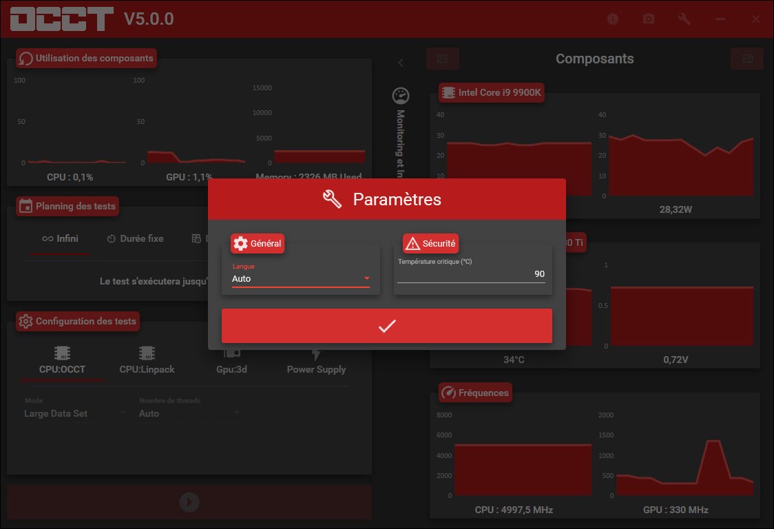 - CPU:OCCT : le test « de base » qui permet de tester la stabilité de votre processeur