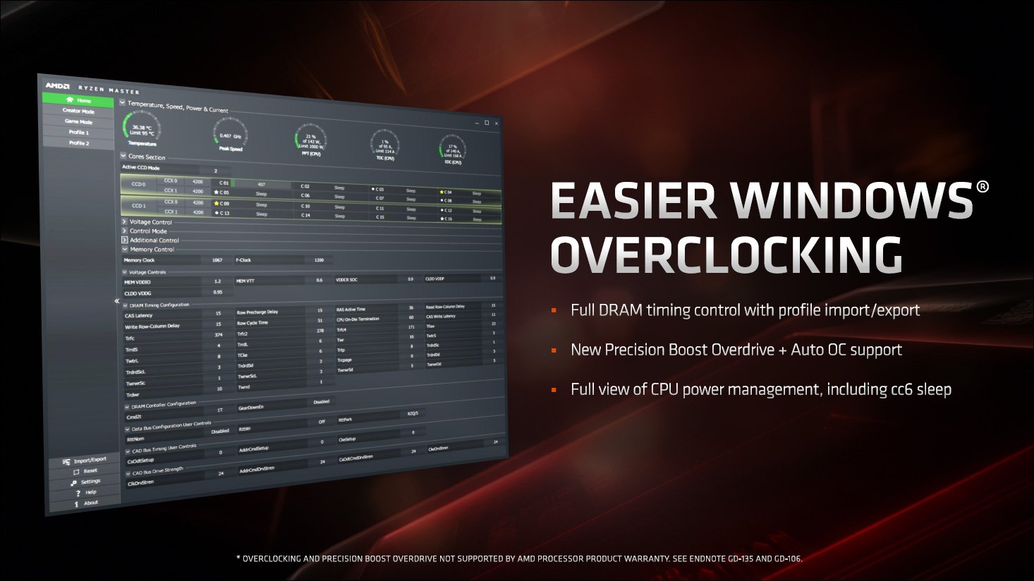 C’est une excellente nouvelle et cette montée en fréquence de la mémoire va permettre à cette nouvelle génération de réaliser des gains dans les jeux mais aussi dans les différents benchmarks en overclocking ! Les cartes mères reprendront le mode 1:1 jusqu’à 3733 MHz et le bios proposera le mode 2:1 afin de monter plus haut en fréquence. Cela permettra d’augmenter la bande passante mais pénalisera légèrement la latence comme le montre le slide. Inutile de dire que l’impatience et l’excitation sont à leur comble au sein de notre rédaction et que nous avons hâte de voir débarquer les premiers samples !