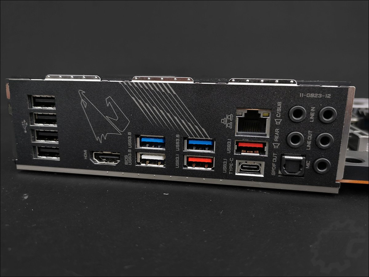 On retrouve deux ports PCIe 4.0 x16, qui fonctionneront en x16, x8/x8 si vous optez pour du SLI ainsi qu’un emplacement PCIe 4.0 x4 et deux x1. Enfin, la carte mère dispose de deux emplacements SSD M.2 et qui bénéficie d’un dissipateur thermique ainsi que d’un pad. Pour le son, c’est une puce Realtek ALC1220-VB qui fait le job. Pour terminer on retrouve à l’arrière un port HDMI, un USB de Type-C, un USB 3.2, un USB 3.2 Gen 2 Type-A, trois USB 3.2, quatre USB 2.0, un RJ-45, une sortie optique S/PDIF et les cinq sortie audios.