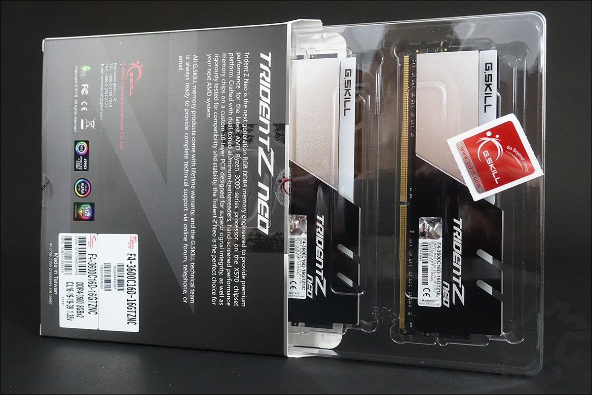 Nous savons que vous êtes nombreux à attendre un retour sur ce kit mémoire Trident Z Neo de chez GSKILL. Le choix d’un kit mémoire n’est pas toujours une chose facile, surtout avec l’arrivée de la nouvelle génération de processeurs. Nous venons de recevoir un exemplaire composé de deux barrettes mémoires de 8 Go. Il s’agit de la version cadencée à 3600 MHz avec des timings de 16-19-19-36. GSKILL a profité du lancement de la troisième génération des processeurs Ryzen et du chipset X570 pour dévoiler cette série Trident Z Neo. Dernièrement, ils ont annoncé l’arrivée d’un kit très intéressant puisqu’il s’agit d’une version cadencée à 3800 MHz avec des timings de 14-16-16-36 (voir news). Le but de ce kit étant d’offrir les meilleures performances pour le ratio 1:1 !