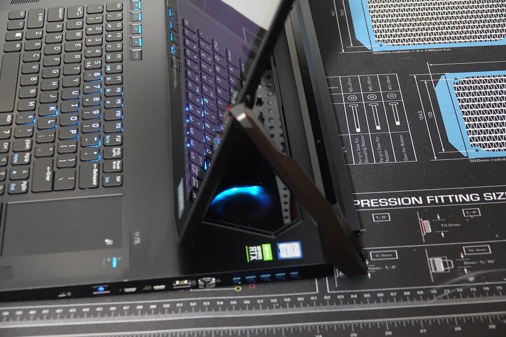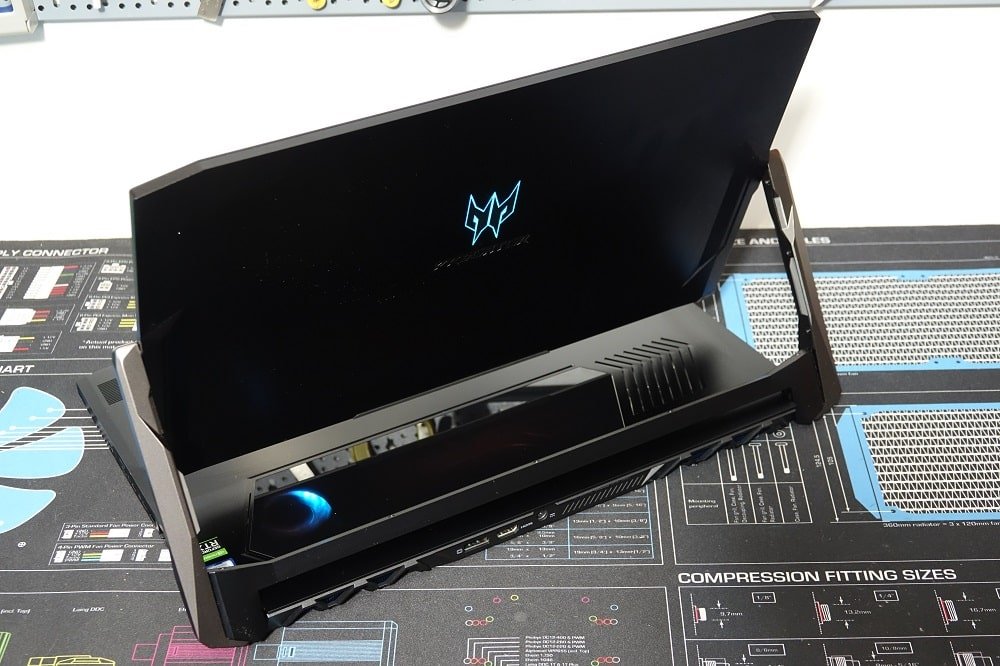 En extérieur, le bébé d’Acer se pare de tous les attributs du gaming. Il fait partie de la gamme Predator, il dispose d’un hardware taillé pour la performance… le tout avec un écran tactile pivotant (!). Si on s’interroge quelques minutes sur le positionnement de l’objet, on assiste en fait à une tentative d’hybridation entre un concept proche du Microsoft Surface Studio et d’un « Predator » classique en tenue de gaming. Force est de constater que l’association laisse perplexe.