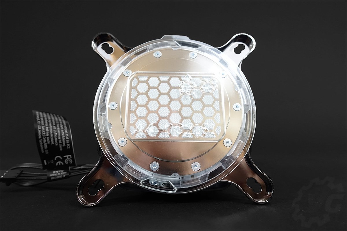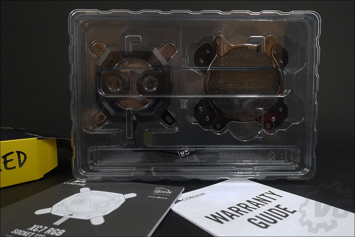 Le waterblock ainsi que les différentes fixations sont parfaitement protégées dans une enveloppe pré-moulée en plastique. La face avant du waterblock se compose d’un cadre plastique de couleur noir englobant les deux trous prévus pour les embouts ainsi qu’une partie centrale transparente. On peut d’ailleurs apercevoir les micro-canaux qui sont au nombre de soixante. La base est en cuivre nickelé et prête à être installée grâce à la pâte thermique pré-appliquée. La pose est assez particulière puisqu’elle prend la forme de mini-alvéoles.