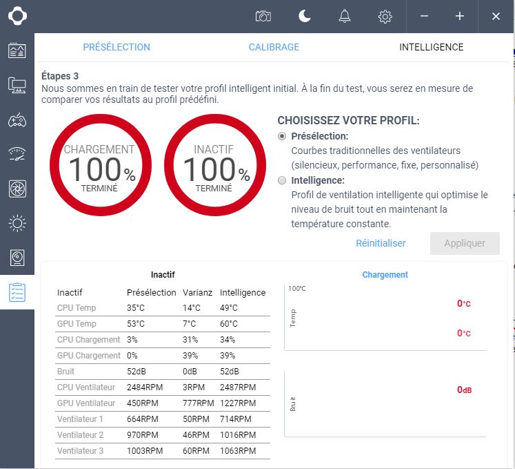 À droite l’état actuel du PC, à gauche le réglage intelligent