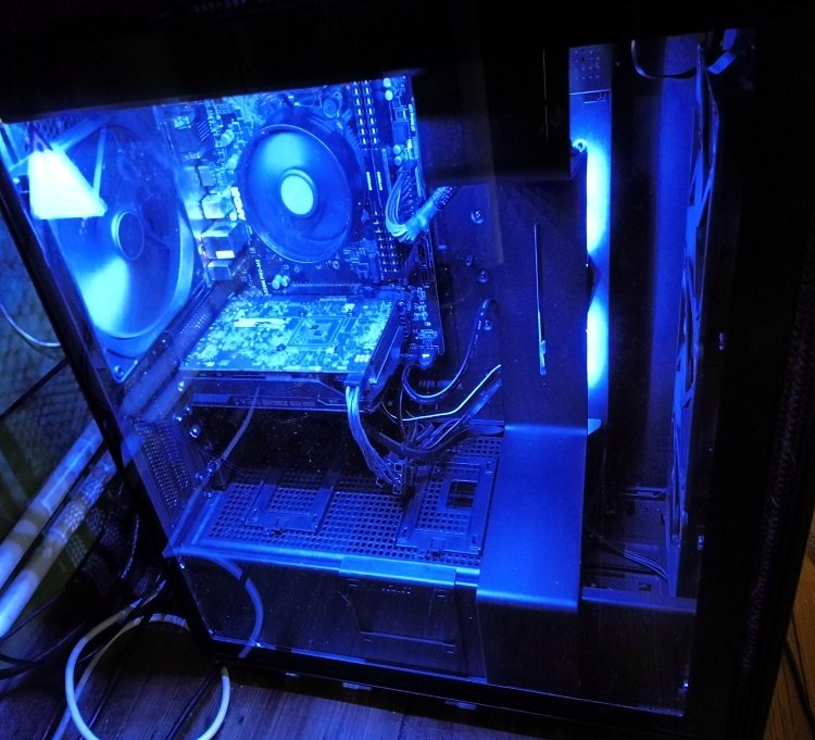 Si tout s’est bien passé, vous allez avoir l’occasion d’observer une tour ronronnante et prête à l’emploi. On remarquera au passage que l’ensemble des matériaux sont de très bonne qualité. Que ce soit pour le verre ou simplement le métal de l’habitacle, rien n’est laissé au hasard. Bien entendu, l’ensemble des choix du constructeur a été fait pour nous assurer une bonne aération et donc une bonne température.