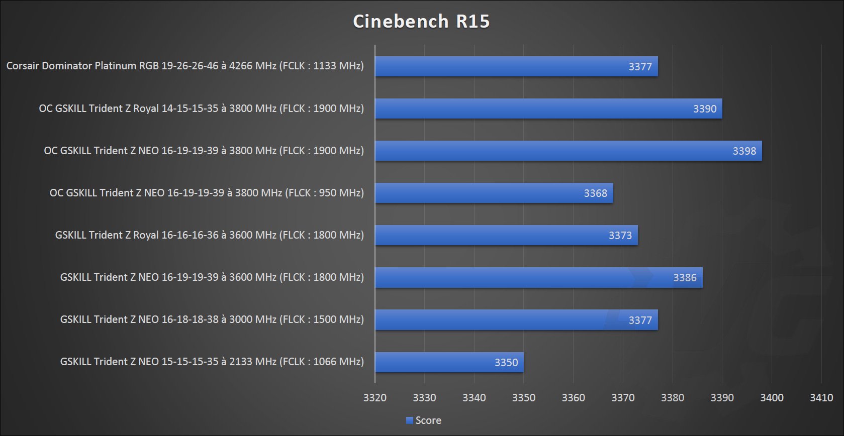 - avec notre kit Neo overclocké à 3800 MHz et en forçant un FCLK à 1900 MHz (ratio 1:1), le gain en terme de performances est très intéressant !