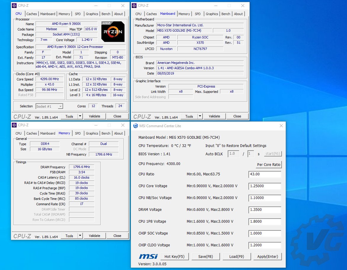 Mais pourquoi se limiter à un kit de 3600 MHz si le contrôleur mémoire permet le support de kit allant jusqu’à 4800 MHz sur notre MSI MEG X570 Godlike ? Parce que finalement, c’est un peu plus complexe que cela. Nous allons essayer de vous l’expliquer de façon simple. Jusque 3733/3800 MHz, le lien entre l’Infinity Fabric (ou FCLK) et la fréquence mémoire se fait sur un ratio 1:1. Ce qui veut dire que notre kit à une fréquence mémoire de 3600 MHz (1800 MHz sous CPU-z) et une fréquence FCLK identique, donc aussi de 1800 MHz. Par contre, au-delà de 3800 MHz, on tombe sur un ratio 2:1 qui a une influence négative sur les latences comme le montre les screens ci-dessous.
