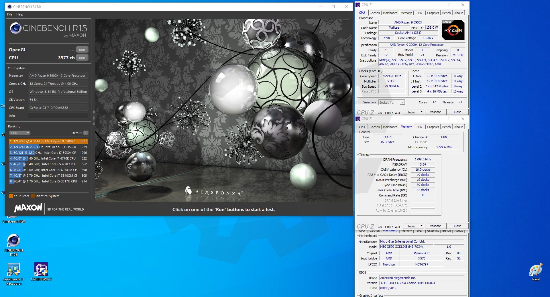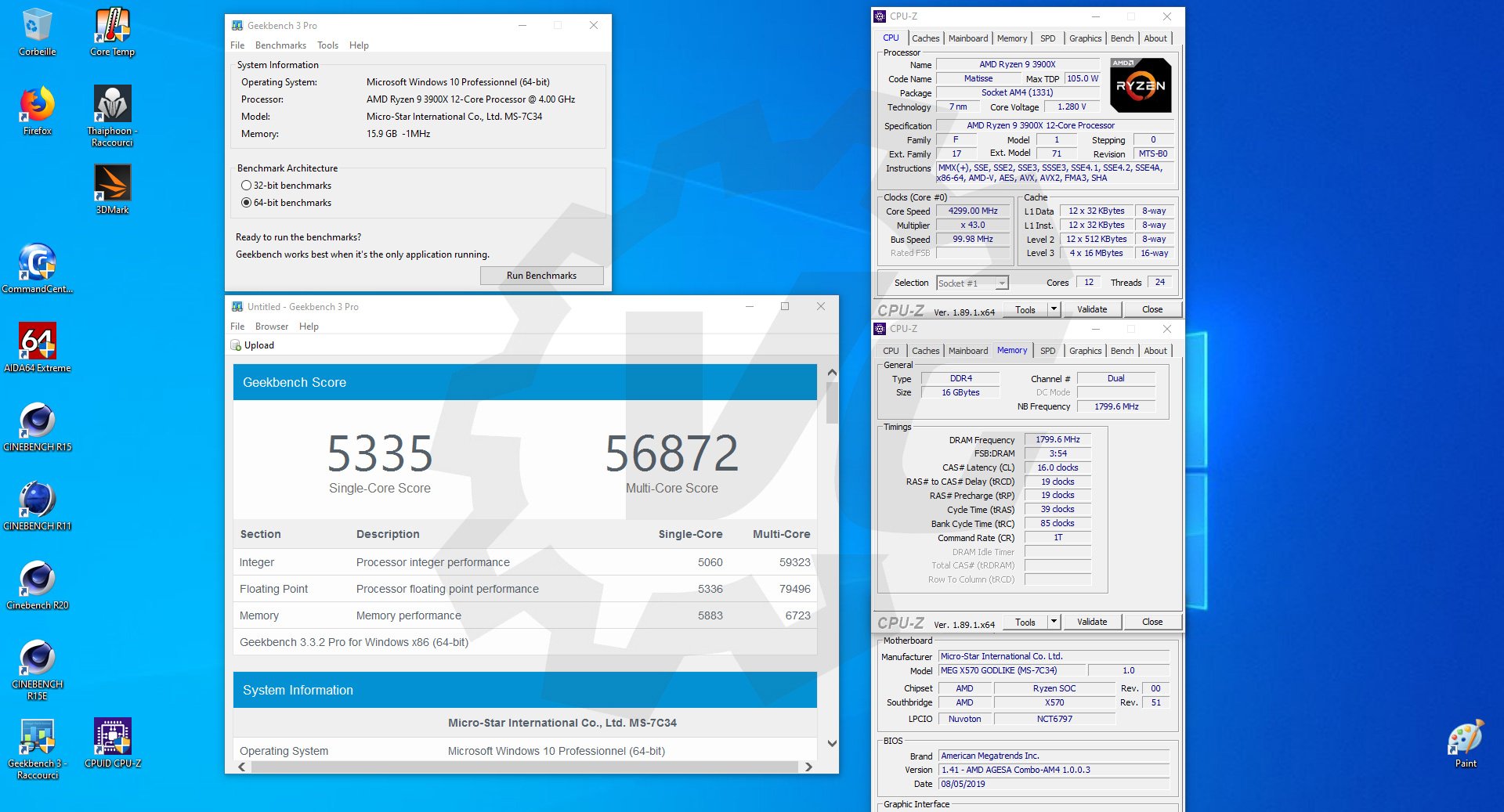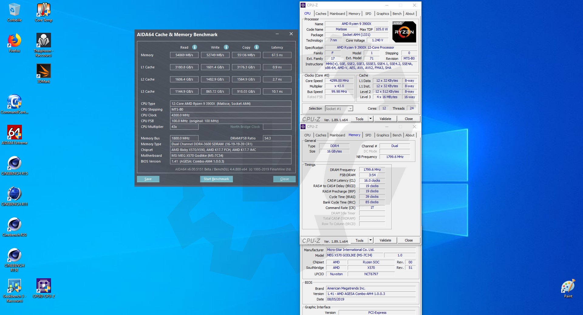 - Processeur : AMD Ryzen 3900X overclocké sur tous les cœurs à 4.3 GHZ à 1,22 volt