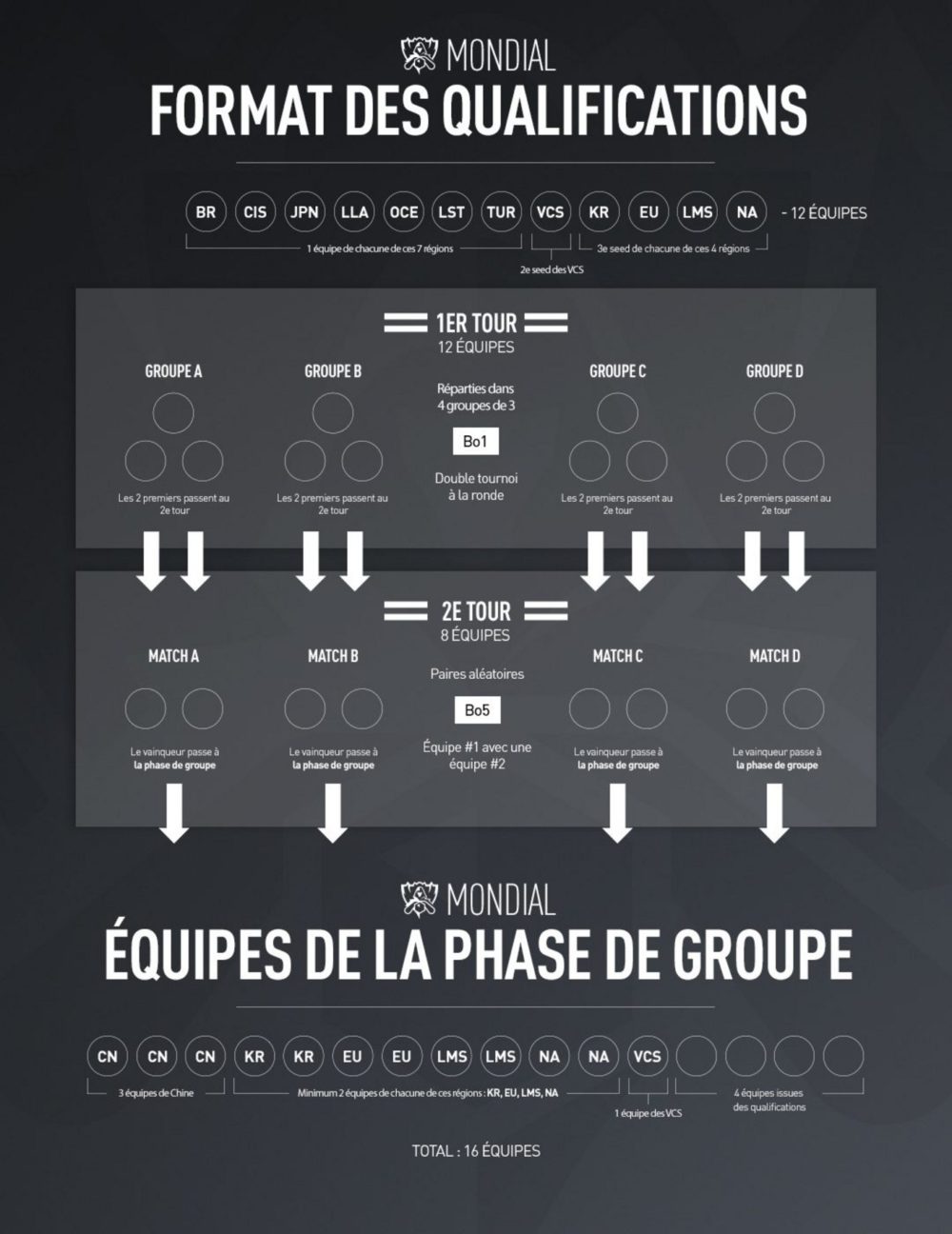 Bien que l’on connaisse la majorité des équipes qui participeront à la phase de groupes, certaines devront encore passer par la phase de play-in. 12 équipes encore en ballottage pour la phase de groupes principale, 7 des ligues mineures et 5 équipes du 3ème seed de 4 régions majeures, selon le format détaillé dans l’image ci-dessous.