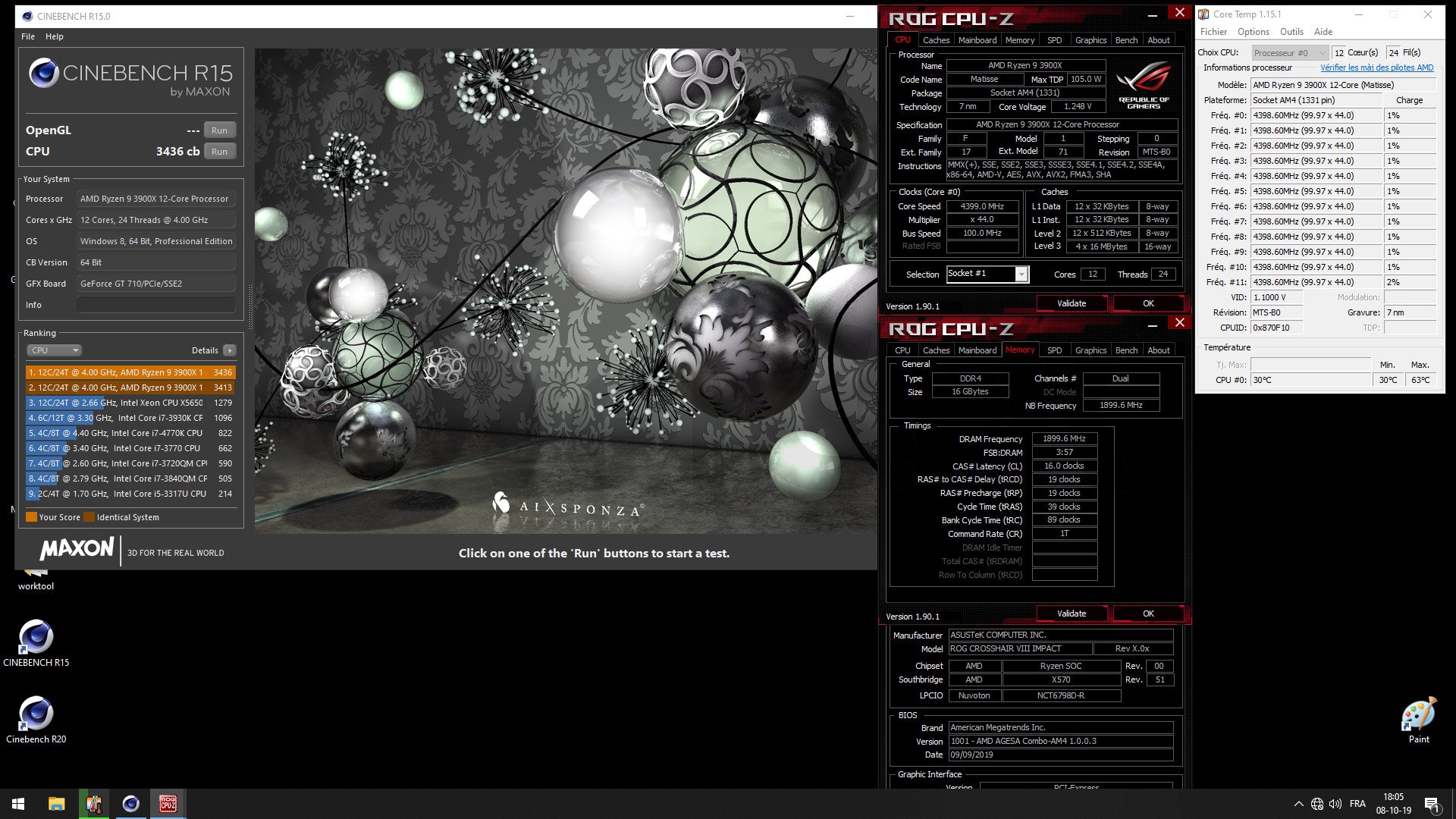 - 4400 MHz (44 x 100) à 1.25 volts : 3436 points (T° max : 63 °C)