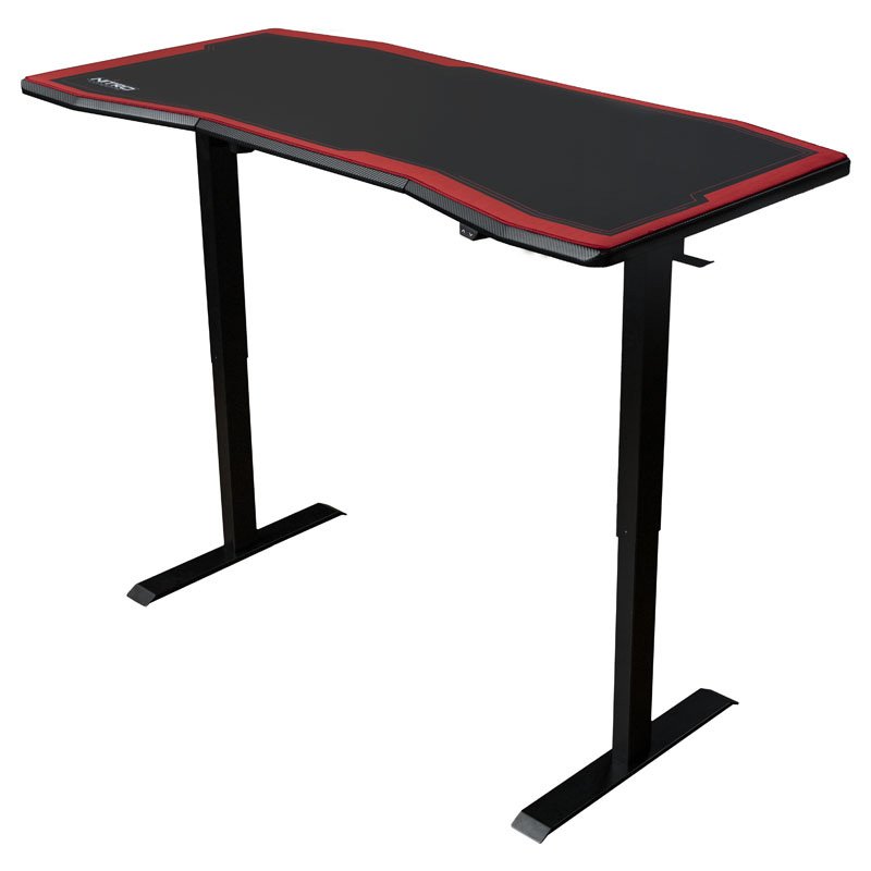 Nitro Concepts est une marque connue et reconnue pour ses chaises gaming et dorénavant pour son nouveau produit : un bureau. Mais attention, pas n’importe quel bureau puisque la hauteur de ce dernier peut varier de 71 à 121 cm. Ce nouveau « gaming desks » se décline sous deux références capable de lever des charges allant jusqu’à 26 kg. La première version, le D16M se règle manuellement alors que la seconde, le D16E, possède un système d’ajustement électrique. Celui-ci pourra donc être utilisé en position assise ou debout en fonction de votre activité : jouer ou du montage PC par exemple. La surface de travail est largement suffisante puisque les dimensions sont de 160 x 80 cm. L’entièreté de la surface est recouverte d’un tapis de souris et vous aurez le choix entre deux coloris : carbone noir ou carbone rouge.