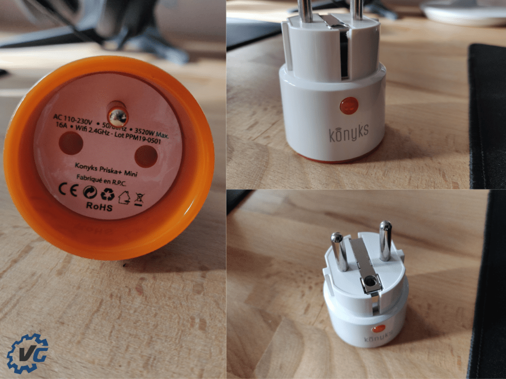 Concernant le design, on est sur une prise arborant un joli blanc brillant, épais et solide, avec une touche de orange vraiment très agréable. En effet, on sort des prises blanches et grises standards, et ça c’est top ! Là encore, aucun défaut visible, nous sommes à nouveau sur des finitions parfaites. Les plots mâles et terre sont en métal, bien entendu. La terre est évidemment présente, ainsi qu’une sécurité enfant très appréciable. Attention cependant, elle n’est pas destinée à une utilisation extérieure. Idem, évitez de la positionner trop près du radiateur car au dessus de 45°C vous pourriez l’endommager.