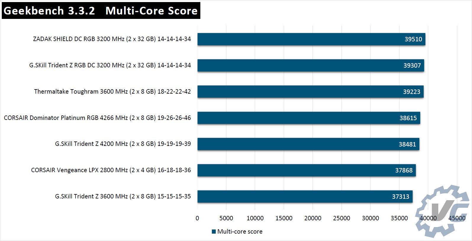 Pour tester et comparer les différents modules mémoires, j’ai utilisé GeekBench ainsi que Wprime qui sont deux benchmarks dont l’impact de la mémoire n’est pas négligeable. Le troisième test a été réalisé sur le logiciel Aida64 qui permet de mesurer la lecture, l’écriture et la copie en MB/s. Voici les résultats obtenus par les différents kits que nous avons entre les mains.