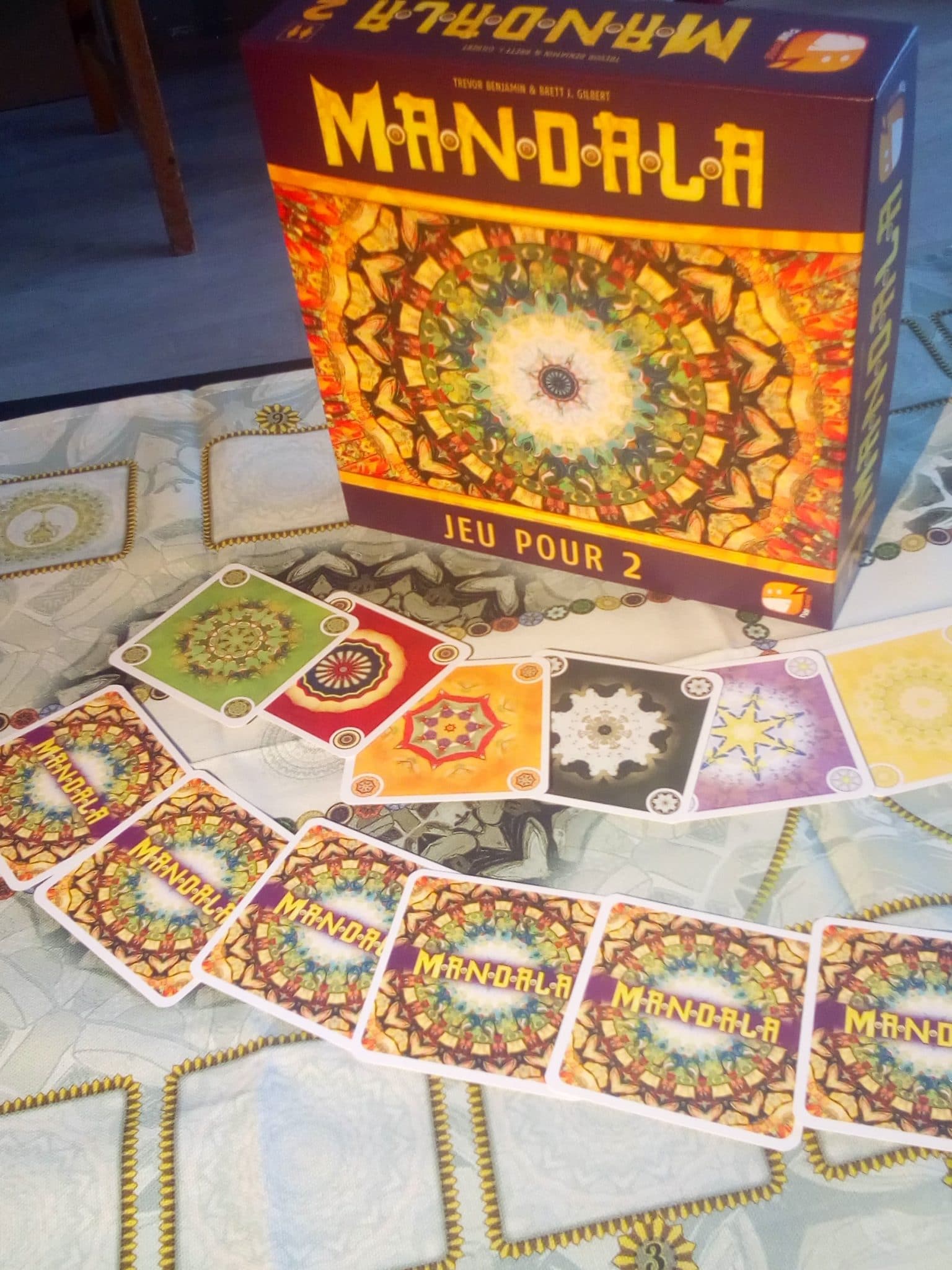 Quand on pense « jeux pour deux », l’un des premiers éditeurs à nous venir à l’esprit est normalement Lookout Games. Pourtant, l’éditeur allemand ne résume pas sa production à cette configuration particulière (il publie par exemple aussi Agricola), il ne cherche pas à en produire de particulièrement beaux ou ambitieux (à la 7 Wonders Duel ou récemment à la Cairn), n’en réalise même pas tant que cela chaque année, mais avec Caverna – Caverne contre Caverne, Patchwork (mon petit préféré), Patchwork Express, Foothills, ainsi que d’autres titres jouables à davantage et particulièrement agréables à deux (Bärenpark, Gingerbread House, Isle of Skye), il s’est réellement imposé dans ce domaine par la variété, l’accessibilité et la très grande finesse tactique de ses propositions. Qu’il ait récemment ajouté à cette gamme le Mandala de Trevor Benjamin (War Chest, High Risk) et Brett J. Gilbert (High Risk, Chocolate Factory, Professor Evil et la Citadelle du temps), illustré par Klemens Franz (qui a illustré tous les jeux cités précisément, ainsi que Montana, Noria, Port Royal…) et localisé par Funforge (Tokaido, Monumental, Namiji, Évolution, et tous les jeux Lookout cités), a donc de quoi attiser le plus grand intérêt.