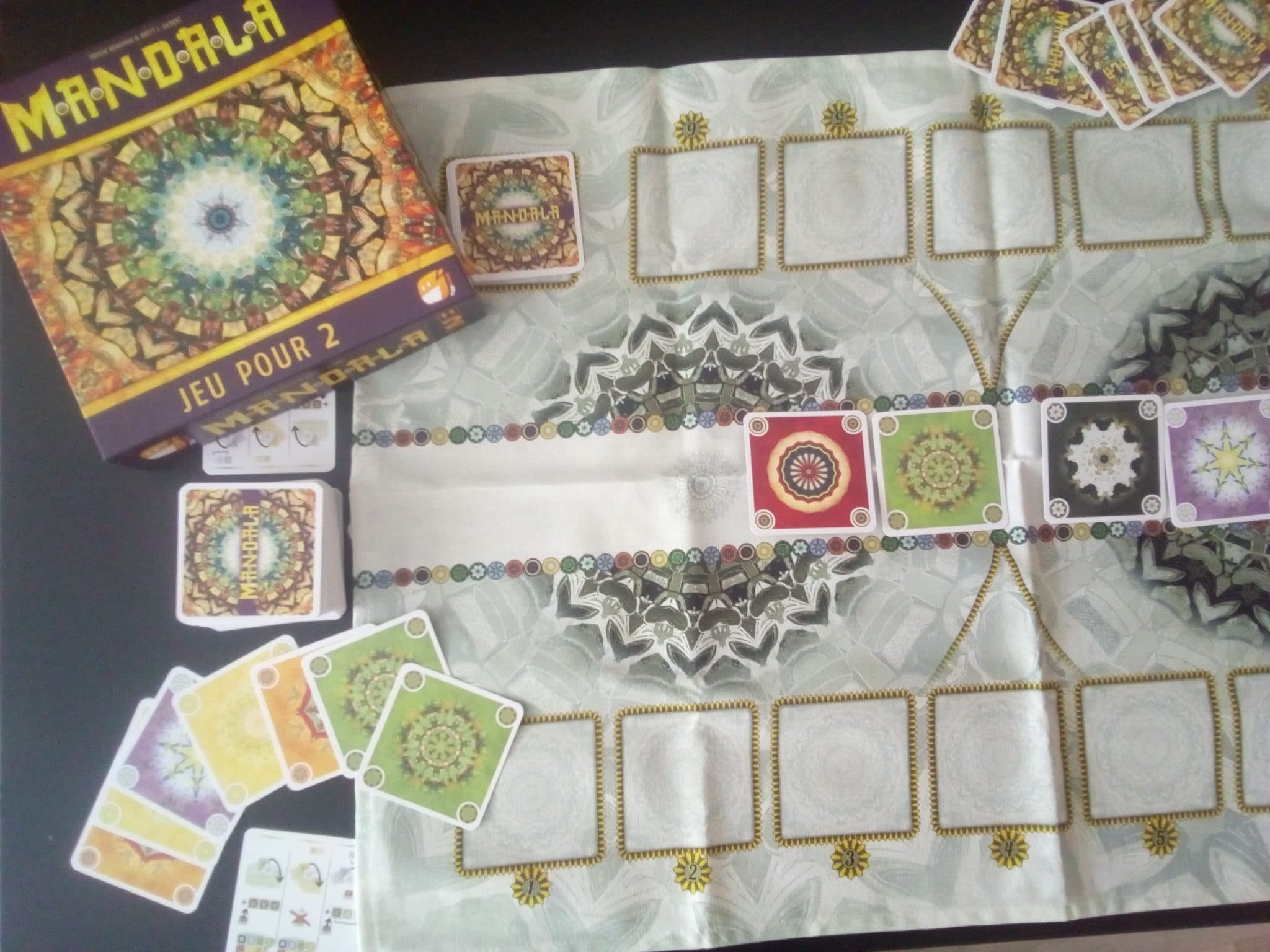 Avec Mandala, on retrouve l’élégance miraculeuse d’un Patchwork. Les règles sont si simples que le feuillet en explicite tous les non-dits les plus évidents et s’autorise des répétitions qui en font un modèle de clarté. La partie avance inexorablement au fur et à mesure que la pioche se vide et que les rivières se remplissent, avec l’impossibilité d’enrayer le rythme du jeu, puisque chaque geste réduit la première ou fait progresser un mandala, et donc la complétion de la seconde, et puisque les actions ne sont qu’au nombre de 3 et limpides au possible.