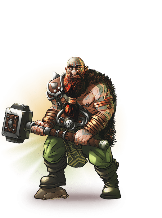 Les héros possèdent tous un pouvoir distinct : le lancer d’un dé supplémentaire pour le puissant nain Kazgin, la récupération d’un équipement supplémentaire à chaque tour pour Arne grâce à son faucon Soko, la possibilité de combattre deux ennemis distants mais orthogonalement alignés à elle pour l’arbalétrière Twindalli, la possibilité de relancer les dés pour la guerrière arcanique Feng-Li (qui modifie donc le temps), l’envoûtement d’un monstre (qui perd un point de résistance) pour le barde Mylfaar…