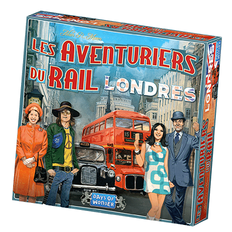 Il y a un peu plus d’un an, on vous présentait dans ces pages Les Aventuriers du rail – New York d’Alan R. Moon, illustré par le très talentueux Julien Delval. Contrairement à ce que l’on pourrait légitimement croire au premier regard, il ne s’agissait pas d’une énième transposition géographique des Aventuriers du rail, mais d’une adaptation mécanique du titre culte… pour des parties de quinze minutes, qui ne trahiraient pas du tout les principes du jeu de base. Un pari étonnant, qui aboutissait à une jolie prouesse, évidemment amenée à faire des petits. Le deuxième jeu de ce cycle Les Aventuriers du rail – villes est alors situé à Londres, et je ne serais pas étonné d’apprendre que des versions Tokyo, Rome, Paris ou Saint-Pétersbourg sont dans les tuyaux ! Ou Venise, puisqu’Alan R. Moon invite à réfléchir à une ville caractérisée par un nouveau moyen de locomotion (comme Londres par les bus à impériale et New York par les taxis), et quel les gondoles seraient tout de même une fort jolie manière de parcourir la cité des doges ?