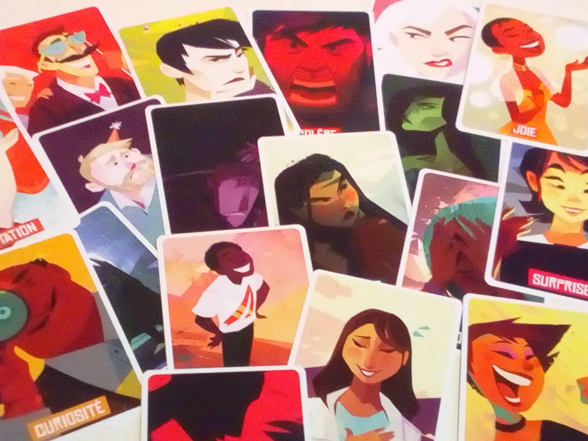 On désigne un joueur actif, qui défausse une carte Émotion au choix et la remplace par une autre au hasard mais portant le même symbole au dos (O ou X). Ça n’a pas forcément d’utilité au premier tour de jeu, l’objectif étant de faire tourner les émotions en cours de partie, mais on appréciera qu’on nous demande tout de même de le faire d’emblée, puisque cela facilite l’air de rien mieux l’intégration de ce point de règle que s’il fallait l’ajouter en cours de partie.
