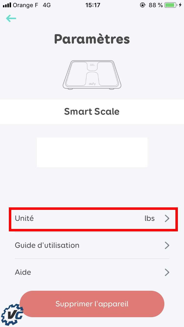 Enfin, attention concernant l’unité de mesure utilisée. Par défaut, la balance est réglée du l’unité « Lbs » ; pour la changer, il faut soit passer par le bouton « Unit » à l’arrière de la machine ou passer par l’application. Personnellement, je vous conseille de passer directement par l’application si vous ne réalisez que des mesures détaillées. L’information est sauvegardée d’une utilisation sur l’autre alors que si l’on utilise manuellement le bouton « Unit », il faut refaire la manipulation d’un jour sur l’autre.