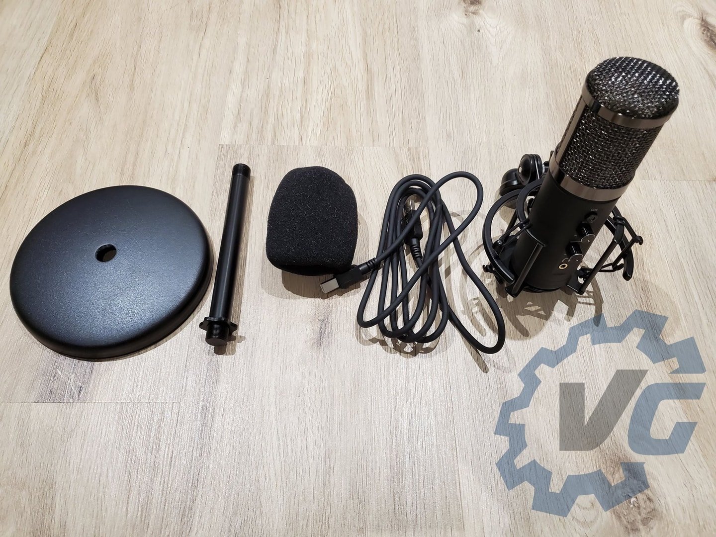 Le tout déballé on se retrouve donc avec le micro, la tige, le pied, un câble d’1m80 et un filte anti-pop adapté à la tête du micro. Le micro en lui-même pèse près de 400 grammes, et paraît très bien fini entre les doigts, avec un aspect très solide et léché. De l’autre côté, le pied est composé d’une base de près d’un kilo, pour faire contrepoids, et une tige métallique de près de 400 grammes également. Le tout s’installe très vite en quelques coups de vissage manuel. Quant à l’installation à l’ordinateur, on part sur un « plug-and-play » du plus bel effet, avec une prise USB qui sera reconnue immédiatement et sans aucune installation supplémentaire. Facile à mettre en place, on s’économisera de belles prises de tête.
