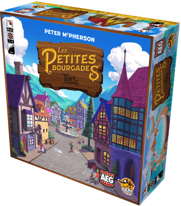 Il faut se réjouir que Lucky Duck Games ait abandonné sa ligne éditoriale d’adaptations socioludiques de licences vidéoludiques (Fruit NinjaZombie TsunamiVikings gone WildMutantsJetpack JoyrideKingdom Rush). Si elles était systématiquement plus inventives matériellement et mécaniquement que tout ce que l’on pouvait en espérer, elles représentaient évidemment une contrainte pour un éditeur débordant de passion. Commençant par la mettre à contribution pour des titres originaux (Paranormal DetectivesChronicles of Crime et ses extensions, bientôt sa suite passionnante et Time of Legends: Destinies), il s’est également lancé dans la localisation, s’ouvrant donc à un choix pléthorique de jeux déjà édités à l’étranger, dans lesquels il pouvait laisser sa passion (et les négociations) le guider vers les titres l’enthousiasmant le plus. Cette démarché avait commencé assez timidement en 2019 avec le superbe et malin La Forêt des frères Grimm… et se poursuit très massivement en 2020 avec une vingtaine de traductions annoncées, dont celle très attendue de Tiny Towns/Les Petites Bourgades.