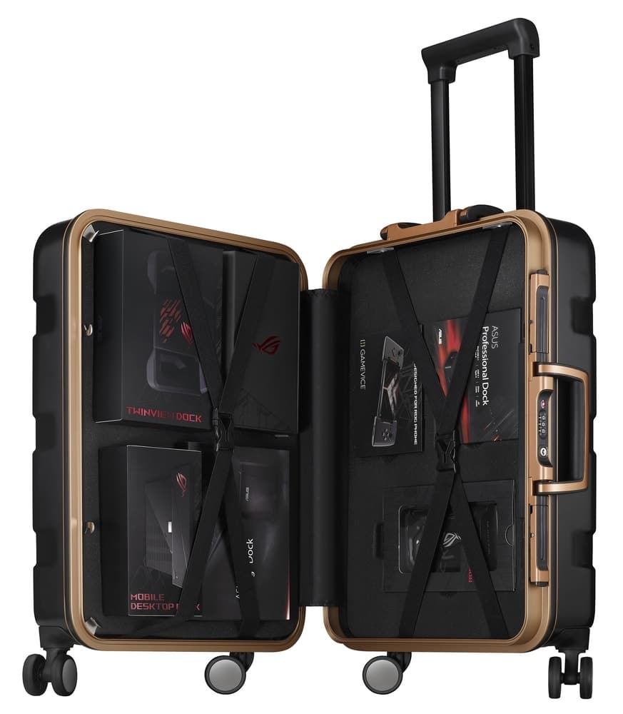 - ASUS ROG SUITCASE : valise aux couleurs de la marque ROG contenant l’ensemble des accessoires.