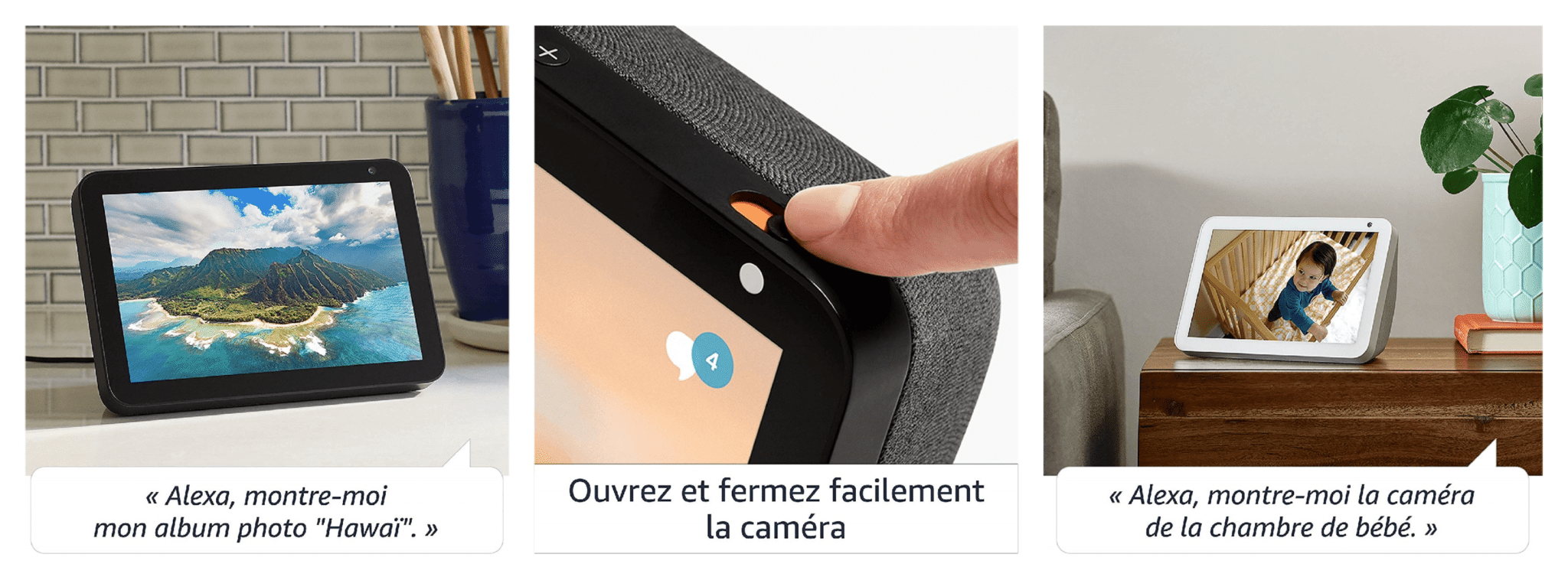 Amazon a annoncé hier le lancement d’Echo Show 8 en France. Avec son écran HD de 8 pouces, un son stéréo riche, ainsi qu’un cache-caméra intégré, Echo Show 8 est l’écran connecté Amazon le plus polyvalent à ce jour pour 129,99 € en noir mais aussi en blanc. N’hésitez pas d’ailleurs à jeter un œil à nos tests précédents juste ici. En effet, Echo Show 8 n’est pas sans rappeler Echo Show 5.