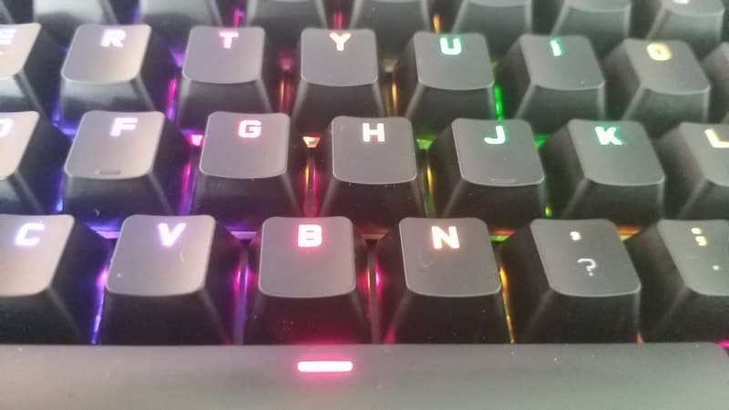 Ma première impression sur le clavier est très positive. Mon réflexe est bien sûr d’apprécier la souplesse et le bruit du clavier. Celui-ci tient ses promesses, et offre un confort qui me semble déjà très agréable. On pourra s’étonner du bruit du clavier, mais si l’on s’est renseigné au préalable, on sait que ce genre de switch est présenté comme sonore, donc aucune déception de mon côté au contraire ! J’ai trouvé ce son très doux, il ne fait pas cheap. Nous parlerons de toute façon de mon ressenti sur les switchs un peu plus bas.