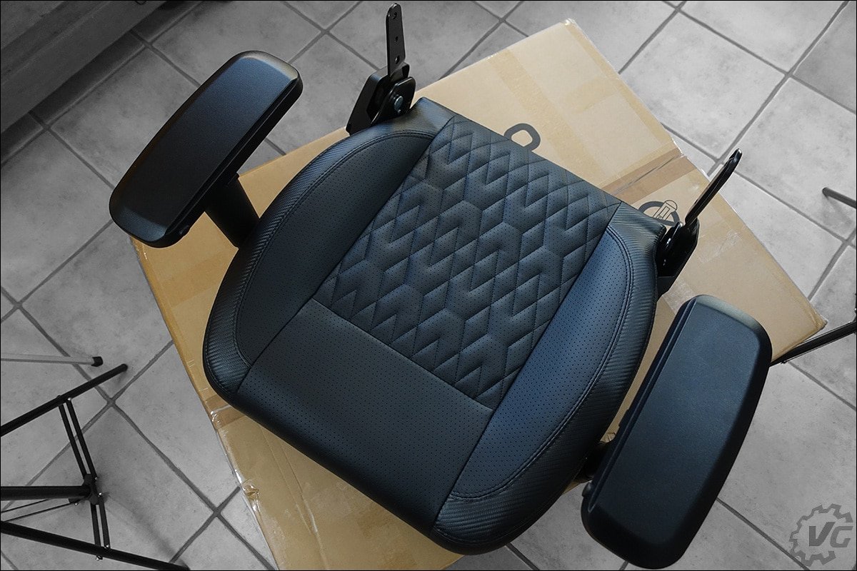 Qui dit réception d’un colis embarquant un siège gaming, dit colis ultra imposant et lourd. Le colis réceptionné a comme dimensions 900 x 710 x 380 mm pour un poids total de 28 kg. Le siège est parfaitement protégé et arrivera sans encombre chez vous. Une fois le déballage débuté, on retrouve dans l’ordre : le support en étoile pour les roulettes, la notice d’installation, le dossier, les coussins pour les lombaires et cervicales, une caisse d’accessoires et l’assise.