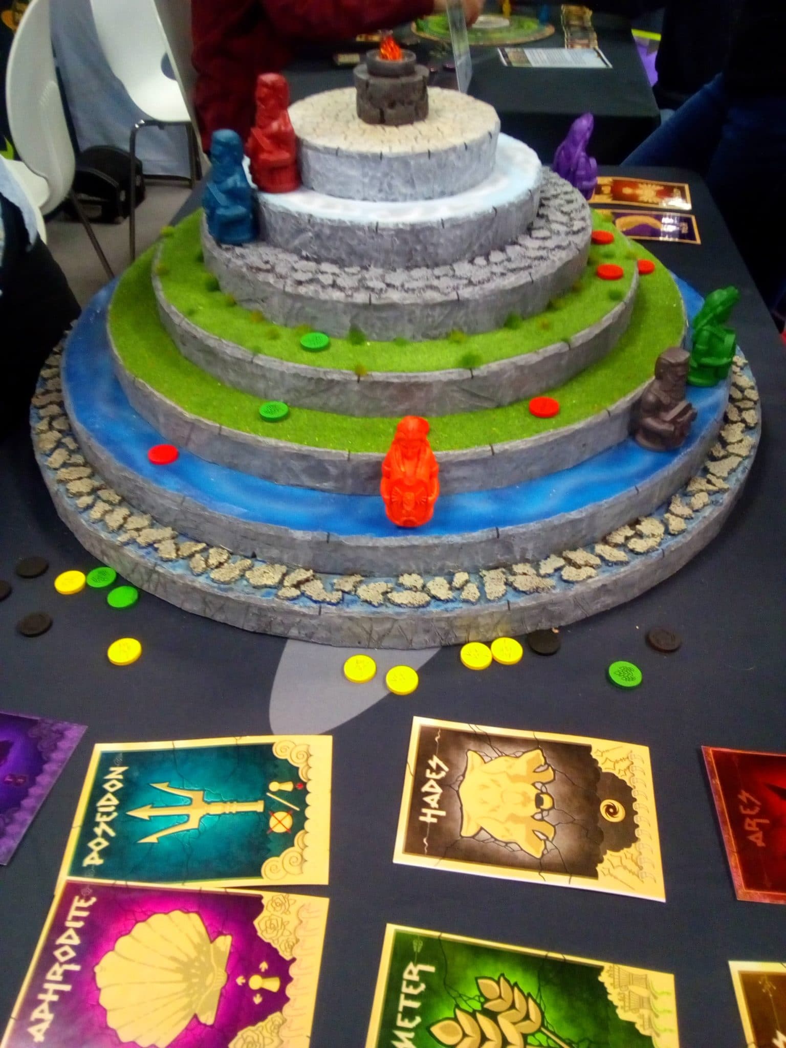 Ne sachant trop combien de temps la partie allait durer, j’avais vu large dans mon emploi du temps, et justement, la table d’à côté se libère pour nous laisser découvrir Hades Trapen financement participatif jusqu’au 17 mars, expliqué par son auteur Michel Gonzalvez. Une chance, puisque j’avais été très intrigué par ce jeu , finalement minimaliste de déplacement de héros dans un labyrinthe pour récupérer des médaillons de diverses manières, y compris en les dérobant à ses adversaires et en envoyant le minotaure sur leur trace.